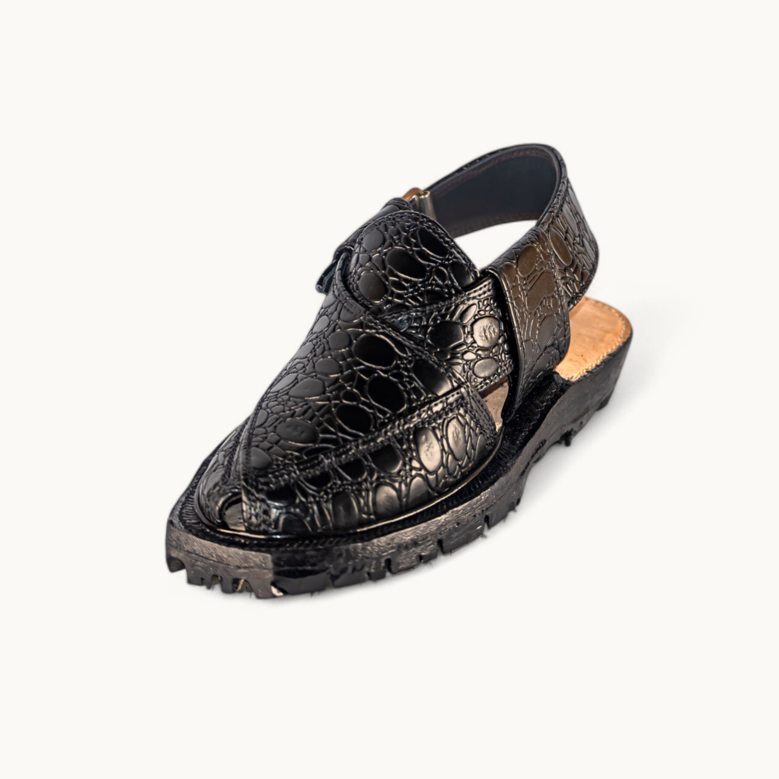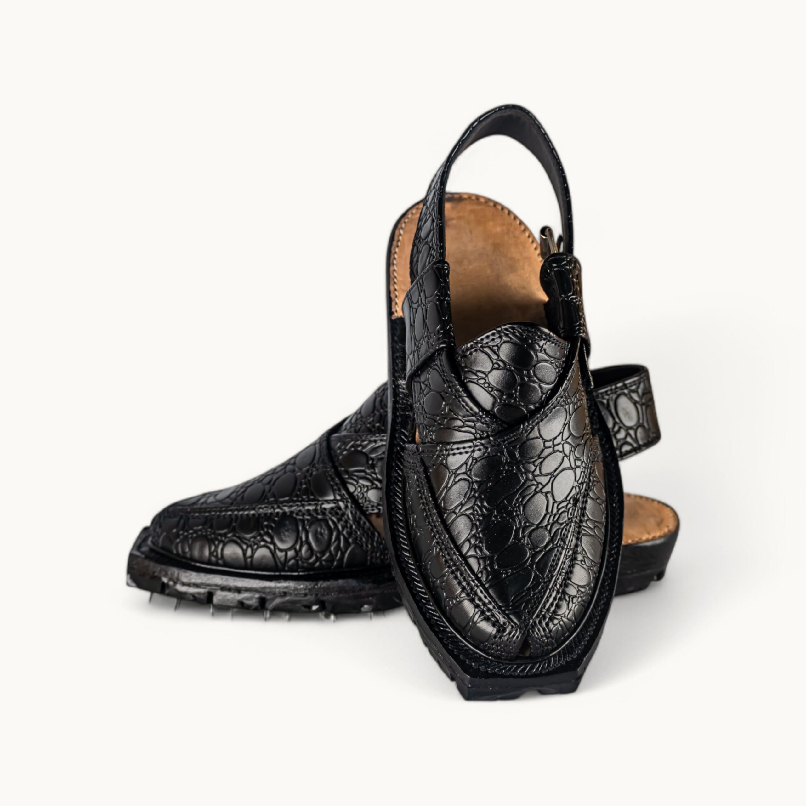 Croco Black Norozi is an original handcrafted Norozi from Dera Ghazi Khan, a region globally recognized for its authentic Norozi craftsmanship. Made with premium croco-textured leather, this footwear reflects strength, tradition, and royal elegance. The deep black finish enhances its bold character, while the traditional construction ensures comfort and durability for long wear. This is not a replica or inspired design — it is a true representation of DG Khan’s Norozi heritage.